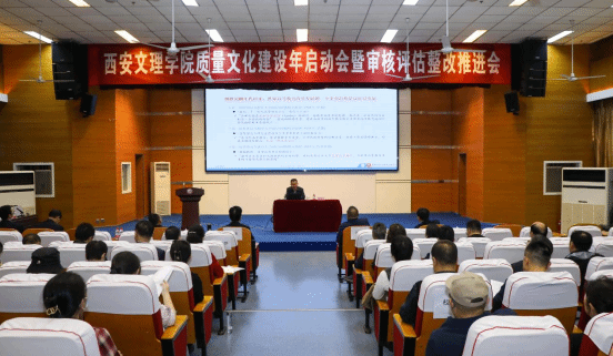 3月26日下午,学校在明德楼A区报告厅举行“质量文化建设年启动会暨审核评估整改推进会”。会议以“聚焦高质量发展,深耕‘最懂西安’;质量文化提质增效,评估整改闭环落地”为主题,全面部署质量文化建设与审核评估整改工作。校领导任晖、刘明利、龚杰昌出席,副处级以上干部、师生代表及校级督导等200余人参会,会议由校务委员徐东升主持。