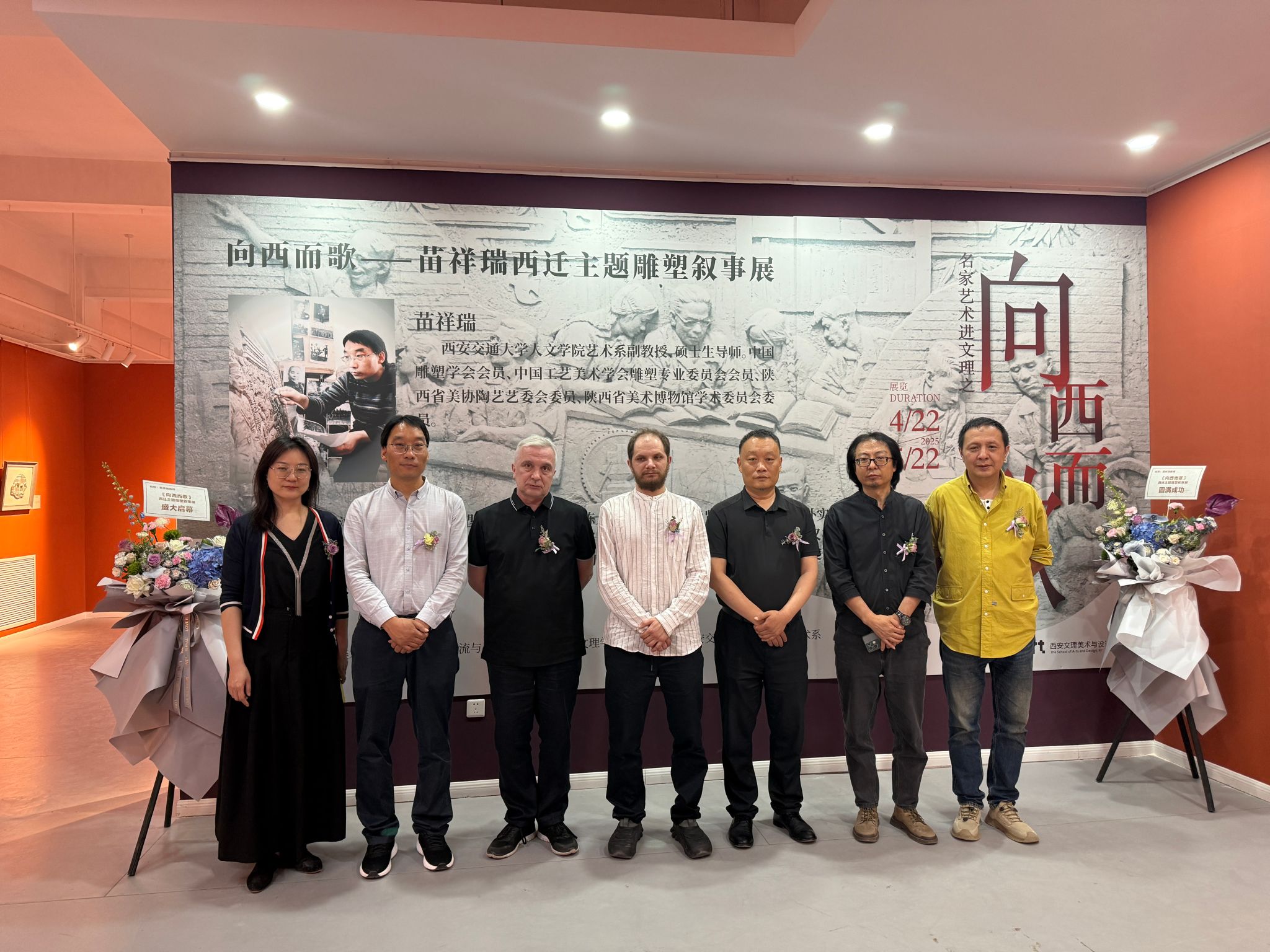 5月8日,由西安交通大学与我校联袂主办的“向西而歌——苗祥瑞西迁系列雕塑叙事展开幕式”暨“主题性美术创作与高校美育研讨会”在学校举办。校党委委员、副校长龚杰昌,以及西安交通大学与我校相关部门负责人,陕西省各高校艺术学院和各界的学者艺术家齐聚一堂,共同见证这场艺术与精神交融的文化盛宴。龚杰昌发表致辞并宣布展览开幕。