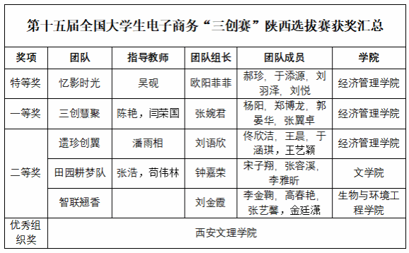 我校“三创赛”校级选拔赛由教务处(大学生创新创业教育中心)主办,经济管理学院承办,共有12个学院110支团队参与此次校级选拔赛。经过2轮线下辅导、校级预选、现场路演等环节,最终推荐“忆影时光”等6支团队入围省赛常规赛道,“三创慧聚”等3支团队入围省赛实战赛道。5月10日,经省级选拔赛现场路演,我校参赛队获特等奖1项、一等奖1项、二等奖3项,其中由经济管理学院吴砚老师指导的“忆影时光”团队代表我校首次进入省赛常规赛终极展示,实现了“零的突破”,为我校参加此项赛事的历史最佳成绩。