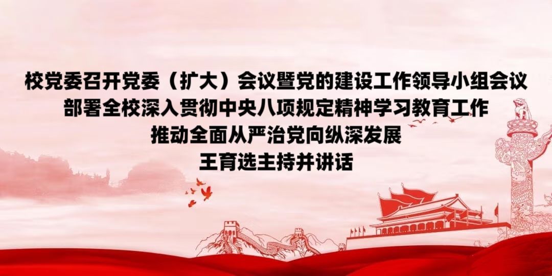3月24日,校党委召开党委(扩大)会议暨党的建设工作领导小组会议,传达中央党的建设工作领导小组会议和省委、市委会议精神,审议通过《关于在全校开展深入贯彻中央八项规定精神学习教育的实施方案》,安排部署学校贯彻落实工作。校党委书记、领导小组组长王育选主持会议并讲话。会议指出,在全党开展深入贯彻中央八项规定精神学习教育,是以习近平同志为核心的党中央作出的重大决策,是加强党的纪律建设、纵深推进全面从严治党的重要举措。...