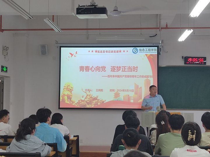 为深入学习贯彻习近平新时代中国特色社会主义思想,贯彻落实党的二十大精神,引导广大青年学生把学习党史作为必修课和常修课,推动党史学习教育常态化,学懂弄通党百年奋斗的历史意义和历史经验,从中汲取砥砺前行的磅礴力量,5月15日,信息工程学院党总支书记王向阳讲授了“青春心向党 逐梦正当时”专题党课,学院43期积极分子、16期发展对象参加了党课学习。课上,王向阳书记以党的十八大以来习近平总书记对青年人的寄语为线索,从中国共产党领导青年工作的历程、...