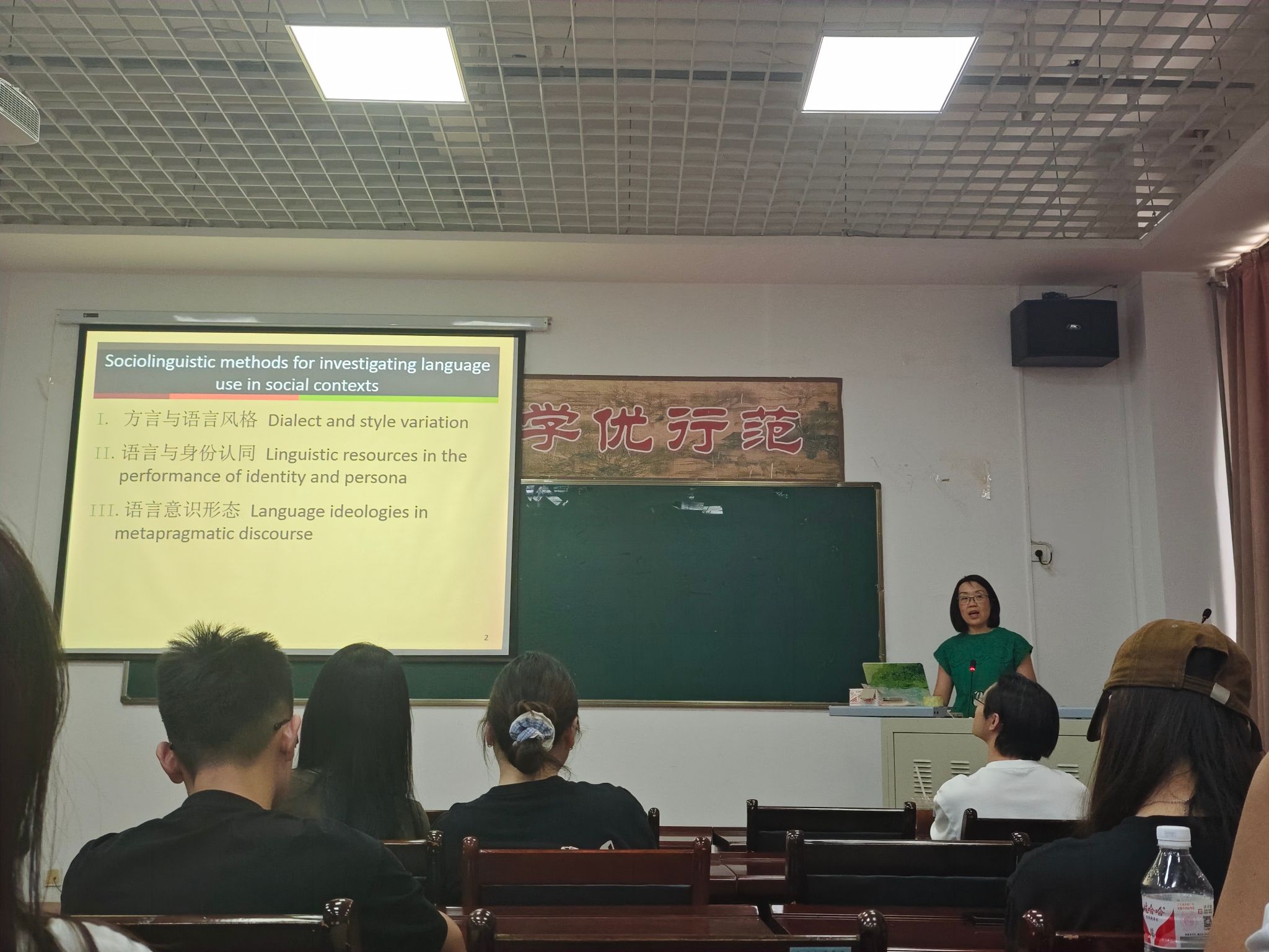 6月12日,文学院邀请美国亚利桑那大学张青教授,为师生作了题为《语言调查与研究方法》的专题讲座。文学院汉语国际教育系主任林贤及师生代表参与本次活动。讲座中,张青教授深入浅出地讲解了在社会语言学背景下进行语言调查的方法与应用,内容涵盖了方言和语言风格、语言与身份认同、语言态度等多个重要主题。通过案例研究,张教授生动地展示了社会语言学研究的理论基础和常用研究方法。讲座结束后,林贤总结发言并邀请张青教授与参会师生进行了深入的交流讨论。...