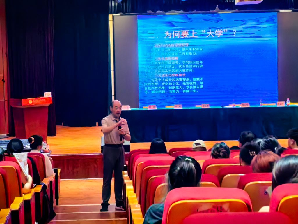 为帮助新生快速适应大学生活,树立积极进取的人生态度,9月4日下午,音乐学院特邀学生工作处正处级组织员、大学生心理健康教育研究中心主任李晓煜在明德楼D区演播厅开展“乐音相伴 开心成长” ——2024级新生心理适应性教育讲座,院党总支委员高婧主持,全院170余名新生参加。李老师通过全体心理互动体验游戏,让同学们放松心情拉近距离,让全体学生愉悦的参与其中。通过学院侯佳乐、余薇薇、刘观波、蒙明慧、王旭五位优秀校友经典案例分享引入,...
